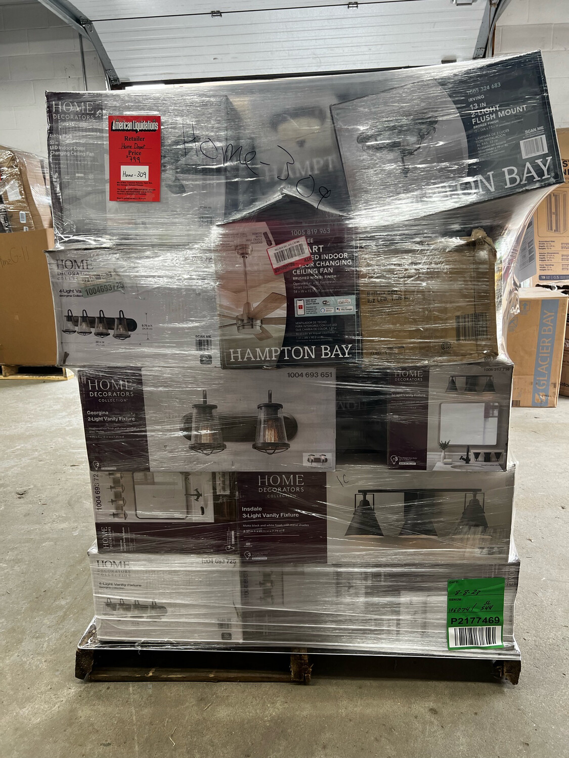 This is a pallet of liquidated merchandise from Home Depot containing lights, ceiling fans, lighting fixtures and more. These pallets are great for all resellers ! Nothing is guaranteed as the pallet is sold AS IS, there are no returns, exchanges, refunds or warranty. The pallet must be picked up from American liquidations within 2 days of purchase in Prospect, CT 06712.